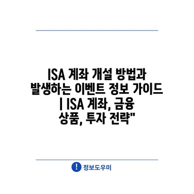 ISA 계좌 개설 방법과 발생하는 이벤트 정보 가이드 | ISA 계좌, 금융 상품, 투자 전략”