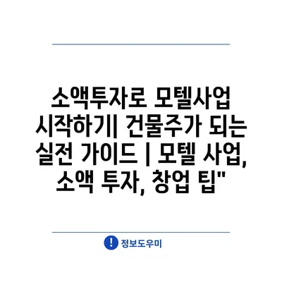 소액투자로 모텔사업 시작하기| 건물주가 되는 실전 가이드 | 모텔 사업, 소액 투자, 창업 팁”