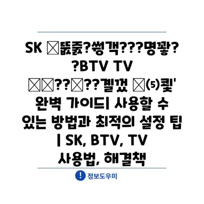 SK 釉뚮줈?쒕객???명꽣??BTV TV 媛€??諛??곌껐 諛⑸쾿’ 완벽 가이드| 사용할 수 있는 방법과 최적의 설정 팁 | SK, BTV, TV 사용법, 해결책