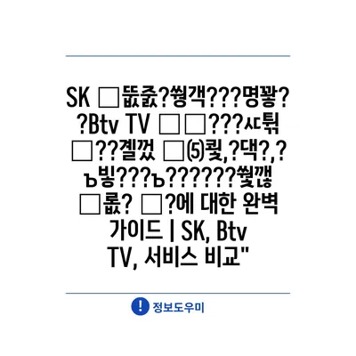 SK 釉뚮줈?쒕객???명꽣??Btv TV 媛€???ㅼ튂 諛??곌껐 諛⑸쾿,?댁?,?ъ빟???ъ??????쒗깮 留롮? 怨?에 대한 완벽 가이드 | SK, Btv TV, 서비스 비교”
