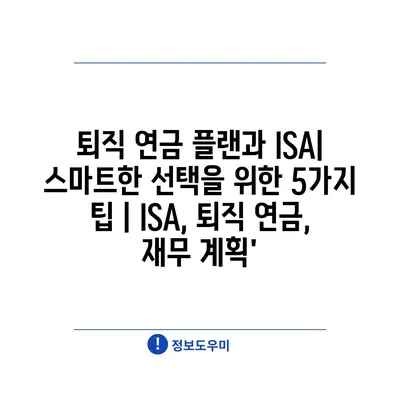 퇴직 연금 플랜과 ISA| 스마트한 선택을 위한 5가지 팁 | ISA, 퇴직 연금, 재무 계획’