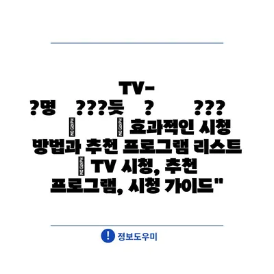 TV-?명꽣???듯빀?붽툑???쒗깮 鍮꾧탳| 효과적인 시청 방법과 추천 프로그램 리스트 | TV 시청, 추천 프로그램, 시청 가이드”