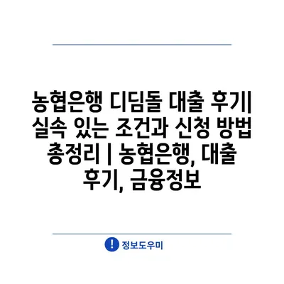 농협은행 디딤돌 대출 후기| 실속 있는 조건과 신청 방법 총정리 | 농협은행, 대출 후기, 금융정보