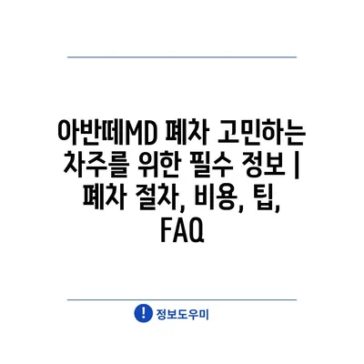 아반떼MD 폐차 고민하는 차주를 위한 필수 정보 | 폐차 절차, 비용, 팁, FAQ