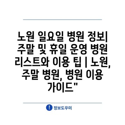 노원 일요일 병원 정보| 주말 및 휴일 운영 병원 리스트와 이용 팁 | 노원, 주말 병원, 병원 이용 가이드”